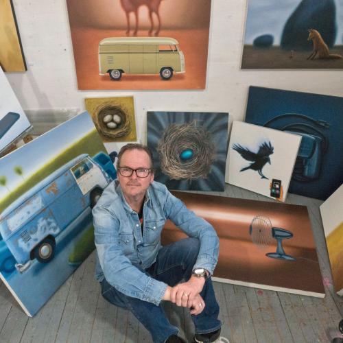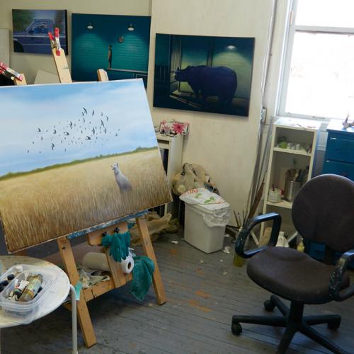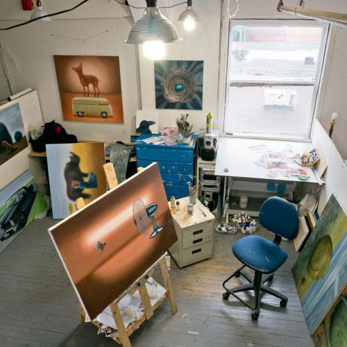 Stephen Perry’s paintings range from intimate to mythic. There is a story going on, but it’s not always apparent what it is. You will see different levels at work— social commentary, humour, symbols and dream-like imagery. There are recurring themes-- animals, nature, humanity, technology... and the places and moments where they intersect. The creative approach has a graphic, “art-directed” feel. A variety of brushwork techniques create a "stylized realism" with smooth gradations and a subtle use of light and shade.